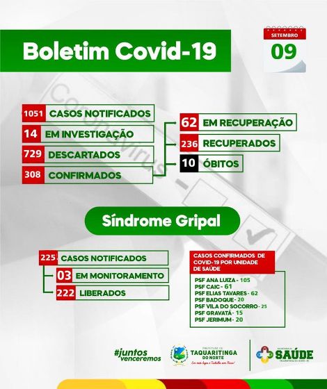 segundo o boletim divulgado nesta quarta-feira (09) pela Secretaria Municipal