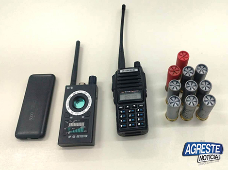 Foi apreendido uma picape Fiat Strada de cor branca e placas PGY8H89 abandonadas pelo criminosos, rádios transmissores e cartuchos de espingarda cal. 12.
