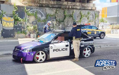 Um carro caracterizado como uma viatura de polícia dos Estados Unidos chamou a atenção de policias rodoviários federais neste domingo (03), na BR-104, em Caruaru, no Agreste de Pernambuco. Apesar de inusitadas, as modificações no veículo estavam autorizadas pelo Departamento Estadual de Trânsito de Pernambuco (DETRAN-PE).